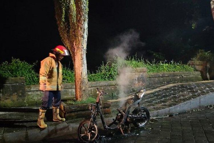 Yamaha Mio ludes sisa rangka setelah hangus diserbu api saat hendak dinyalakan pemiliknya. Diduga ada korsleting listrik