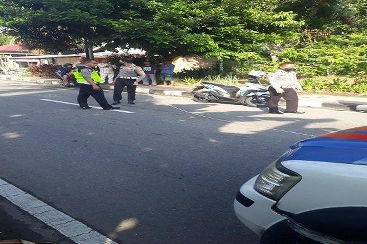 Seorang anggota polisi jatuh terseret usai ditabrak pengendara motor trondol yang melju dalam kecepatan tinggi