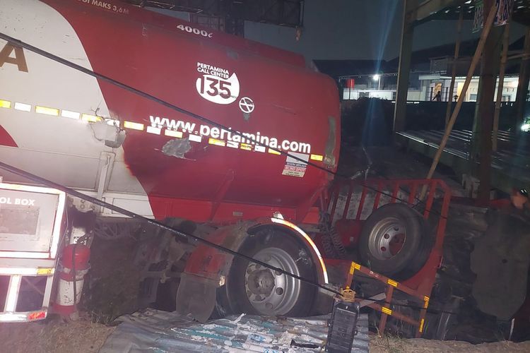 Truk Tangki Pertamina bablas di turunan jalan dan masuk ke halaman rumah warga. Renggut nyawa kernet