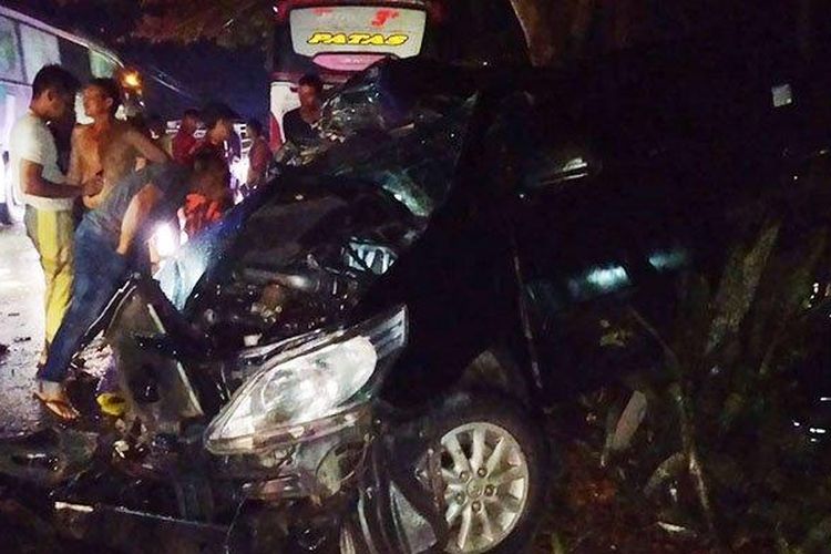 Kijang innova ringsek parah usai diterjang kencang bus Harapan Indah di Aceh timur. Akibatnya 2 orang dinyatakan meninggal dunia