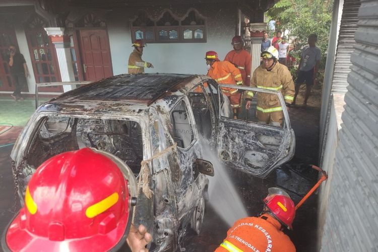 Toyota Avanza seketika berubah jadi rongsokan usai terbakar habis di parkiran rumah. Berawal saat pemilik menyalakan mesin
