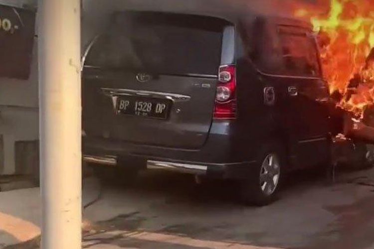 Toyota Avanza yang sedang diparkir bikin warga panik, api menyambar bagian kabin dan bodi depan dengan cepat