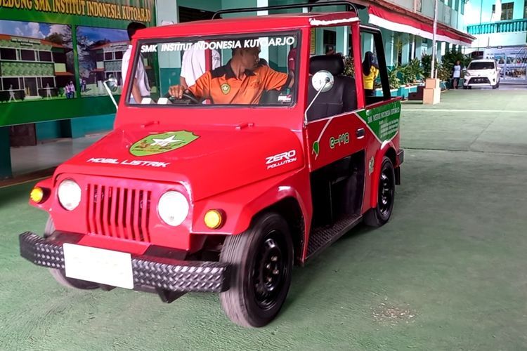 SMK Institut Indonesia Kutoarjo ciptakan mobil listrik berbentuk jip. Gubernur Jateng Ganjar Pranowo beri apresias