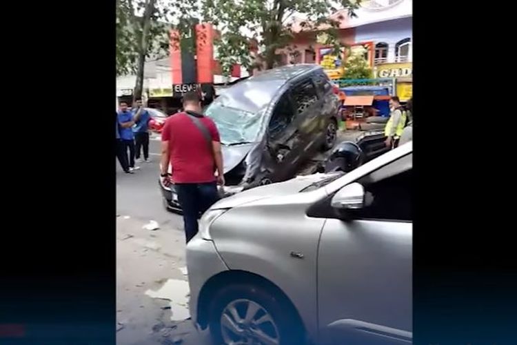 Video Honda Mobilio kecepatan 100 km/jam sabet Toyota Avanza parkir di Jl Jamin Ginting, Medan Baru, Medan lalu terbang dan kayang hadap langit