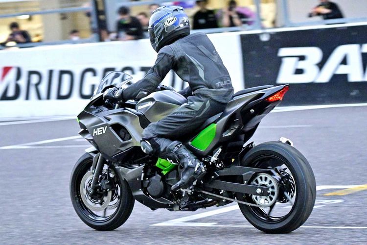 Inilah wujud prototype Kawasaki HEV atau disebut Ninja 650 Hybrid yang muncul di gelaran Suzuka 8 Hours di sirkuit Suzuka Jepang
