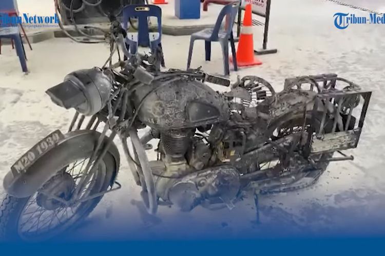 Motor peninggalan perang dunia kedua, BSA M20 jadi bangkai alias terbakar di SPBU kawasan Pematang Siantar