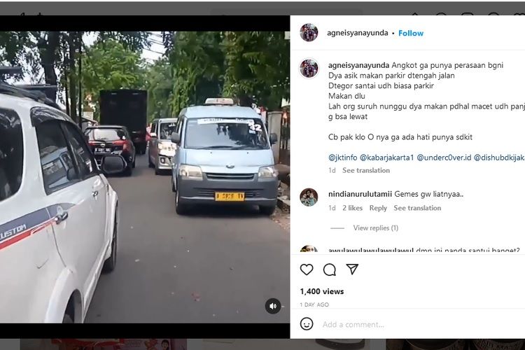 Viral sopir angkot asik makan saat kena tegur wanita gara-gara kendaraannya parkir di jalan dan bikin macet