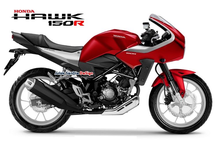 Digimods Honda CB150 Streetfire ala Honda Hawk 11 oleh Julak Sendie Design. Bagian wajah pakai fairing cafe racer, ekor tetap sporti