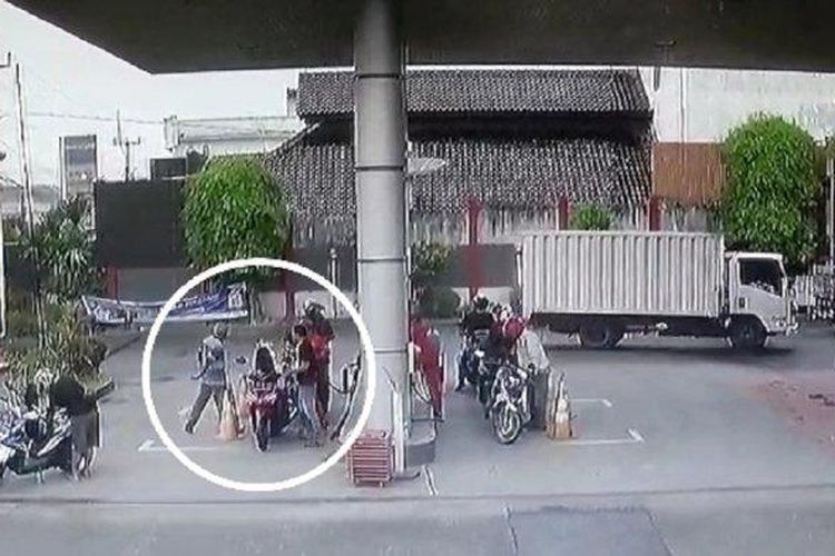 Rekaman video pria plontos coba bakar SPBU Gunungjati, Cirebon dengan lempar korek api ke tangki Honda Vario yang tengah isi Pertalite