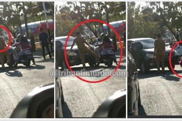 Viral video seorang oknum ASN tendang pemotor wanita sampai jatuh. Identitas dan pekerjaan sudah diketahui