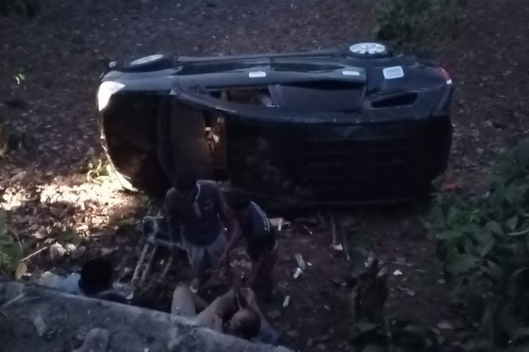Avanza Dinas KPU Pecah Kaca Habis Rebahan, Bablas di Turunan Curam