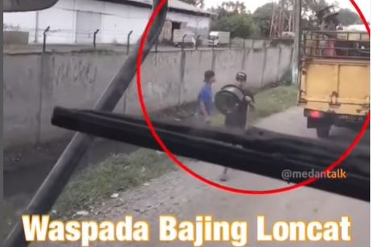Terekam jelas dalam video aksi bajing loncat jarah dua pelek dari atas truk di Jl Kayu Putih, Medan Deli, kota Medan, Sumatera Utara