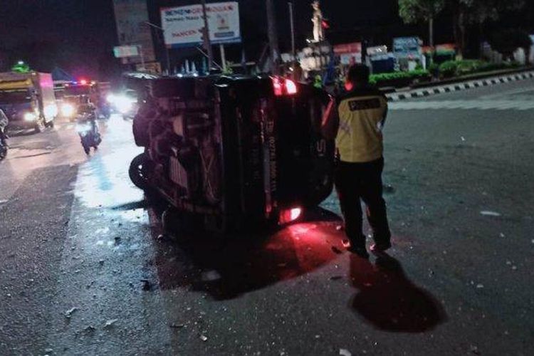 Suzuki APV ambulans rebahan di tengah jalan usai disambar Honda CIvic yang melaju kencang di persimpangan jalan
