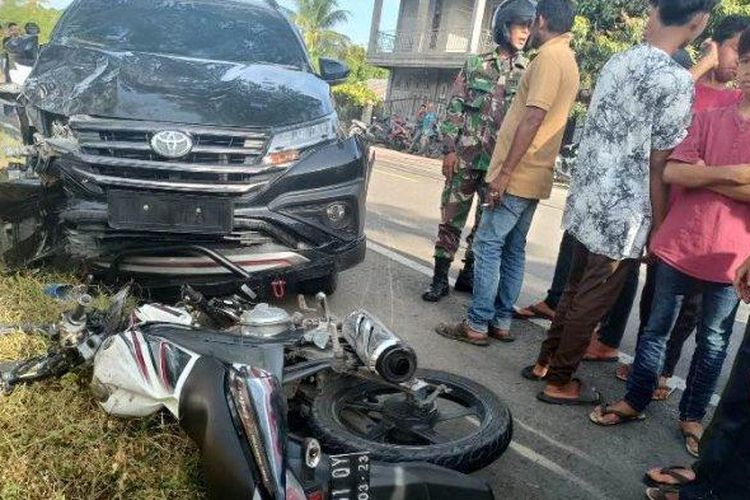 Kecelakaan maut Toyota Rush adu kepala dengan Yamaha V-Ixion di Bandar Baru, Pidie Jaya, Aceh, korban kritis dan tewas