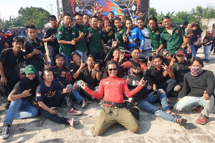 Ribuan pengguna motor Yamaha RX-King tumpah ruah di eks Tomang Tol, seberang Pamulang Square, Pamulang, Tangsel, Minggu (30/10) pagi
