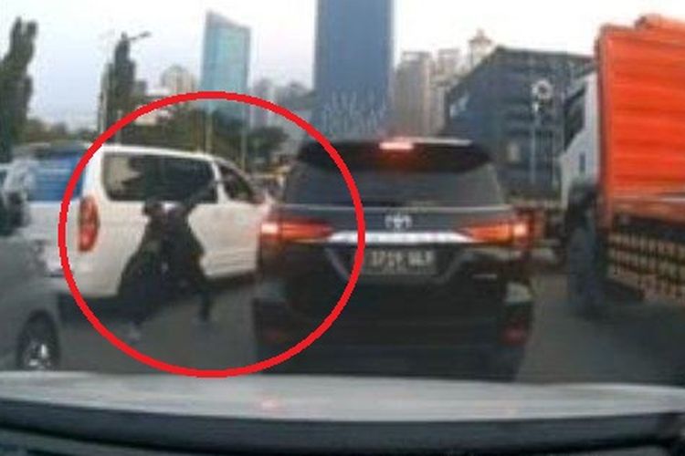 Polsek Kebon Jeruk berhasil menghajar dua tukang petik spion mobil mewah saat macet, tertangkap basah saat congkel Toyota Fortuner