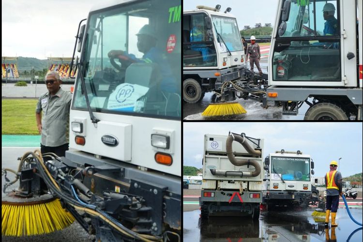 Road Sweeper Bekerja, Aspal Sirkuit Mandalika Bebas Debu dan Kotoran