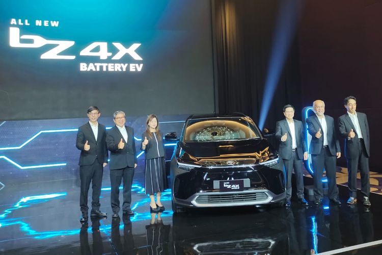 Toyota bZ4X resmi mengaspal di tanah air. Harga mobil listrik Toyota bZ4X yang diimpor utuh dari Jepang, harga bZ4X Rp 1 Miliar