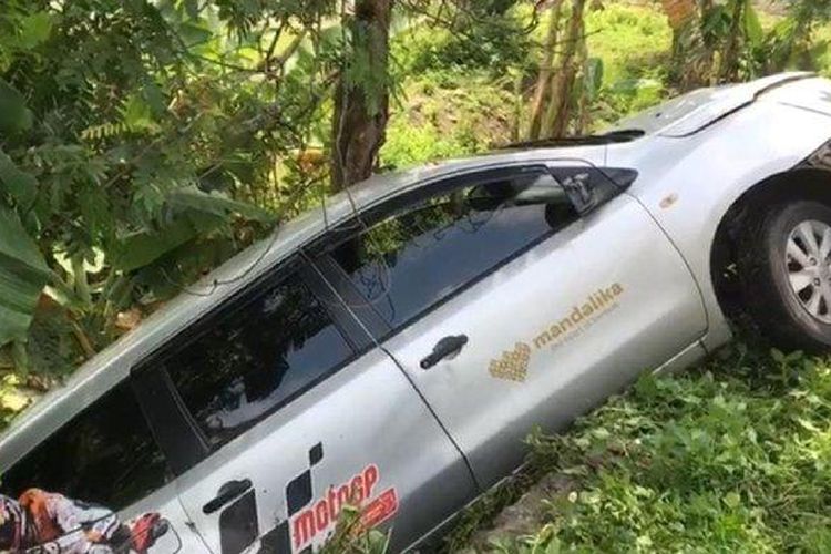 Nissan Grand Livina Sekretaris Kesbangpol Lombok Tengah, Lalu Masuajiadi terperosok ke kebun jelang WSBK Mandalika 2022, posisi dongak ke langit
