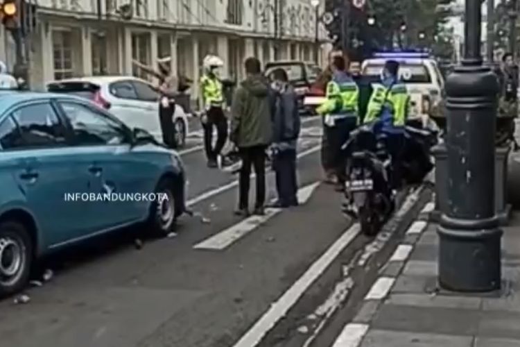 Kecelakaan terjadi di Jln Asia Afrika pagi hari, yang melibatkan Toyota Limo dan pengendra motor yang membawa daging ayam.
