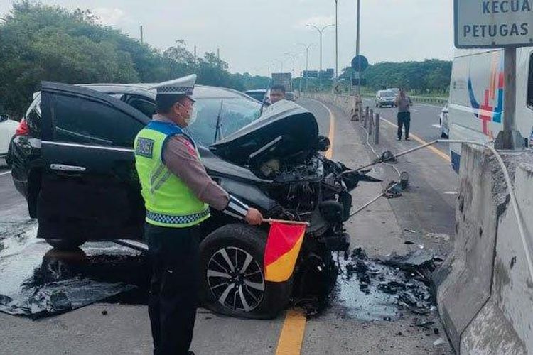 Mitsubishi Pajero Sport alami petaka di awal Desember 2022, hantam beton tol Surabaya-Mojokerto, bumper sampai mesin teriris, lansia tutup usia