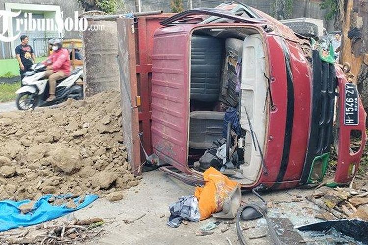 Ulah Mobilio mendadak keluar dari rumah dan tak terkendali, truk muat tanah ditubruk sampai rebahan dan muatan tumpah