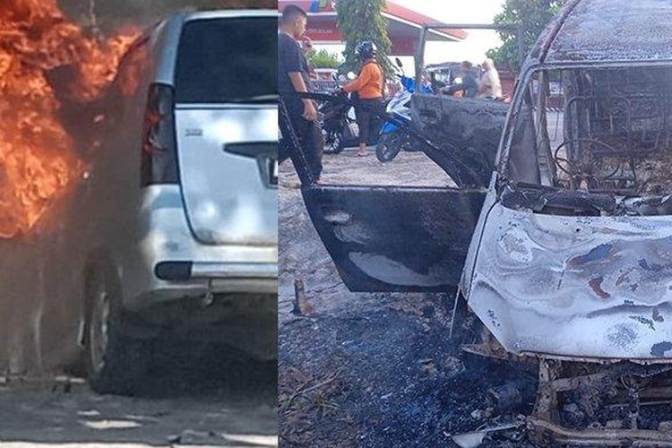 Daihatsu Xenia mendadak terbakar lepas isi bensin di SPBU Biting, Purwantoro, Wonogiri, pemilik dorong sampai masuk lahan kosong