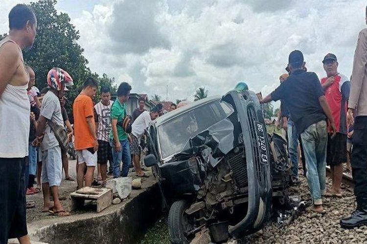 Toyota Kijang Kapsul berubah bentuk, warga dengan dentuman saat dihantam kereta api di Pasar Lama, Lahat, Sumatera Selatan