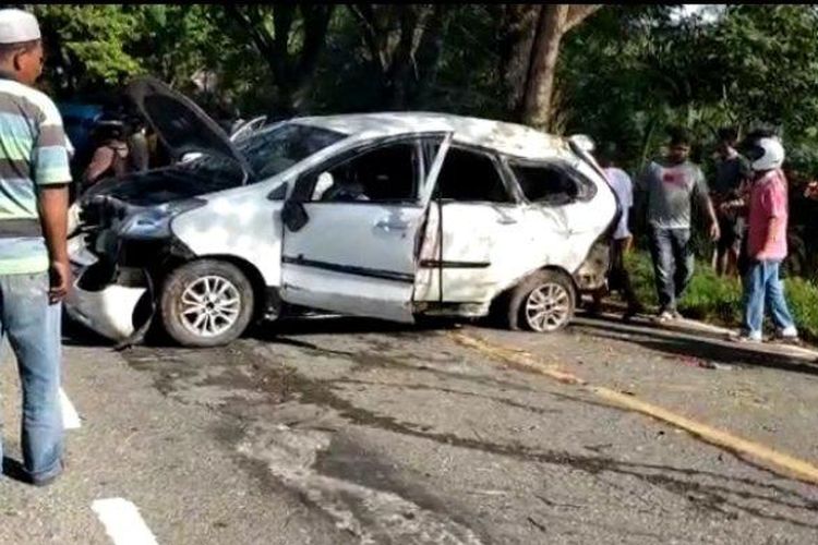 Daihatsu Xenia berisi delapan orang hancur lebur, terpelanting hantam pohon akibat hindari lubang jalan, tiga nyawa melayang