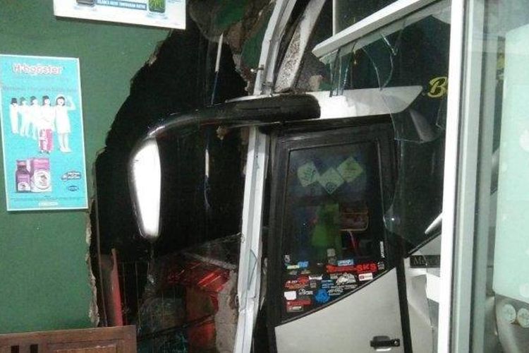 Bus oleng hajar Ertiga dan X-Trail Sekaligus gara-gara nyalip motor di depan. Baru berhenti setelah tabrak apotek