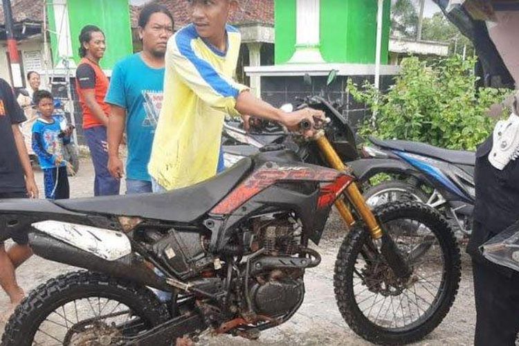 Seorang pria yang sedang mencari ikan di waduk Lamongan bukannya dapat mujair tapi malah Honda CRF150L utuh