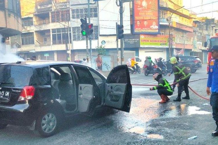 Chevrolet Aveo mendadak berasap putih tebal di Jl Sutomo, Medan Kota, Sumut, Damkar kerja pagi-pagi, sopir diperiksa Reskrim