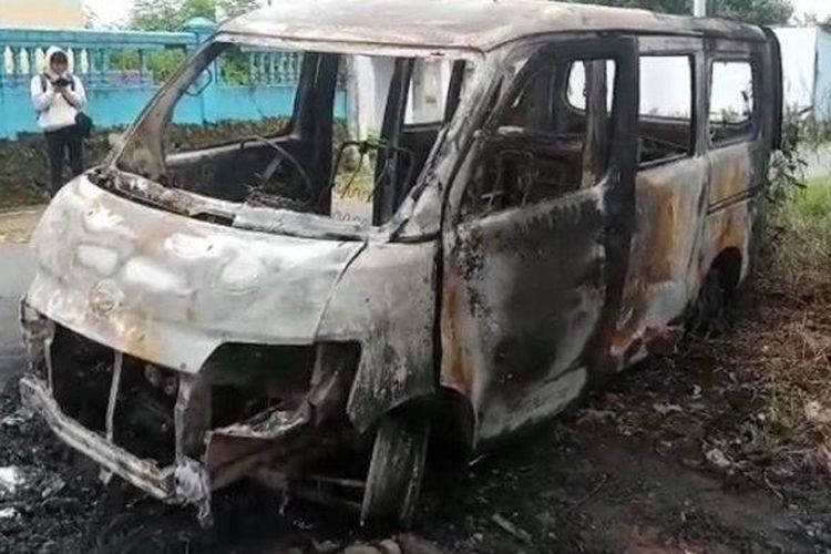 Daihatsu Gran Max berubah jadi besi kiloan akibat genset mesin es krim terbakar di depan SDN Cinangsi, Cibogo, Subang