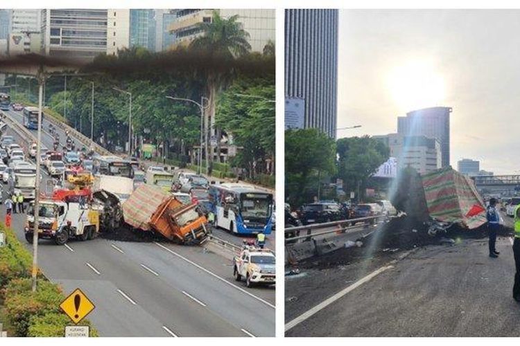 Dua truk bertabrakan di Tol Dalam Kota di pagi hari sempat bikin macet lalu lintas. Berawal sopir kurang konsentrasi