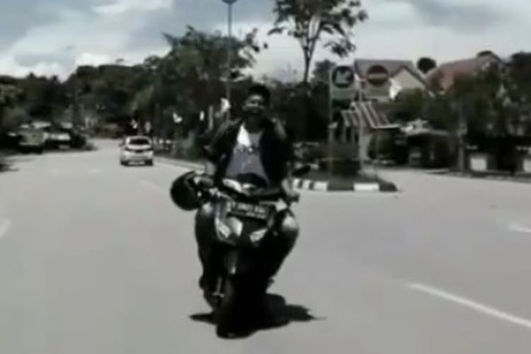 Seorang pemuda nekat mengejek polisi yang bertugas mengatur lalu lintas, ini bermulan saat ia ditegur karena tidak pakai helm