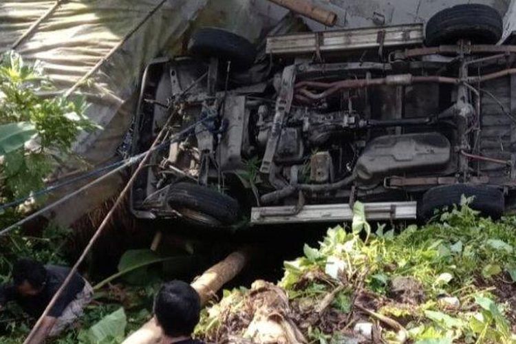 Daihatsu Zebra jumpalitan, terbalik hingga kolong dipelototin langit akibat mesin mati di tanjakan desa Plumbon, Tawangmangu