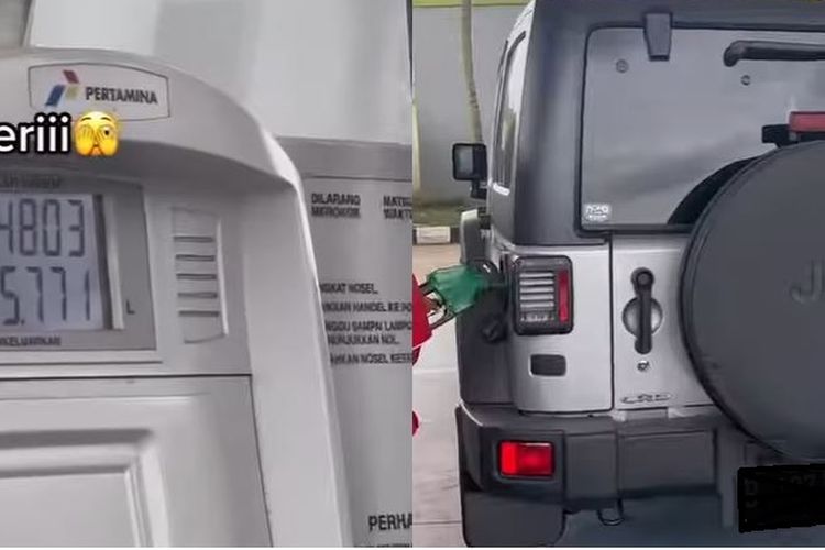Jeep Wrangler Sport 2.8 terpantau di SPBU isi Pertamina DEX dengan nominal Rp 1,4 juta, banjir pujian netizen