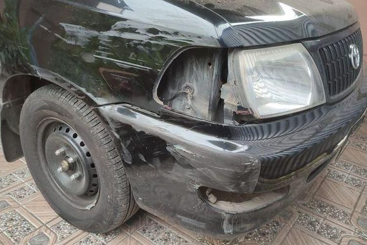 Toyota Kijang Kapsul milik Wartawan TV jadi korban tabrak lari, bodi baret parah lalu ditinggal kabur SUV hitam di Sukabumi
