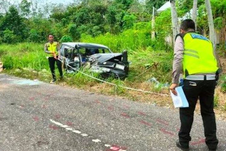 Toyota Kijang LGX berubah jadi seonggok rongsokan di tepi jalan raya ness Bulian-Jambi, Petajen, Bajubang, Batanghari
