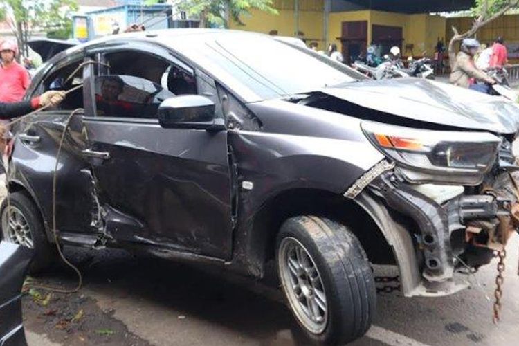 Honda Brio babak belur tabrak bapak dan anak yang berboncengan motor. Keduanya luka parah karena kecelakaan tersebut