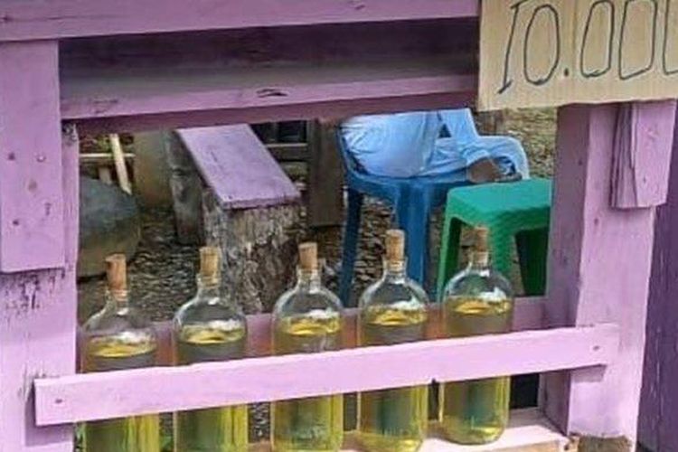 Warga pulau Sebatik, Nunukan, Kalimantan Utara jual bensin RON 98 asal Malaysia secara eceran dengan harga Rp 10 ribu per botol