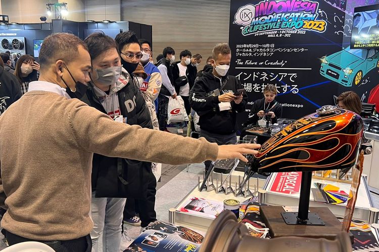 Produsen cat otomotif, Belkote kolaborasi dengan bengkel motor custom Kedux Garage, pamer tangki 'banaspati' di Osaka Auto Messe 2023