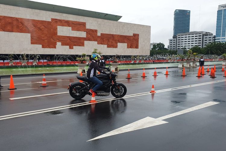 Garrison Motoforge tantang bikers adu ketangkasan mengendarai moge di kompleks DPR/MPRRI, Minggu (12/2/2023)