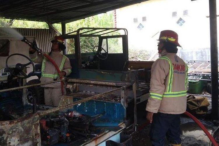 Bengkel mobil di Malang ludes terbakar setelah percikan api pengelasan sambar tangki bensin Toyota Hardtop yang lagi dikuras