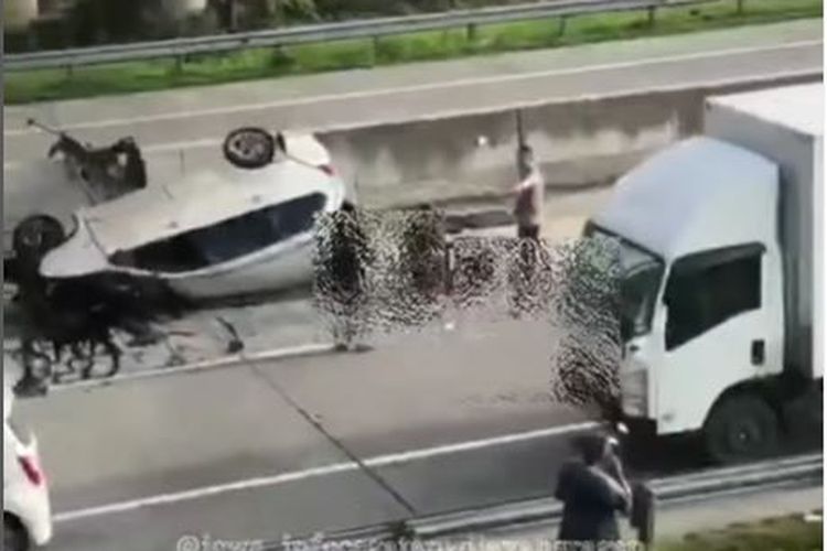 Tragedi maut ruas tol Solo-Ngawi KM 546.700/B Trobayan Gringging, Sambungmacan, Sragen, Avanza koprol usai sentuk truk wing box