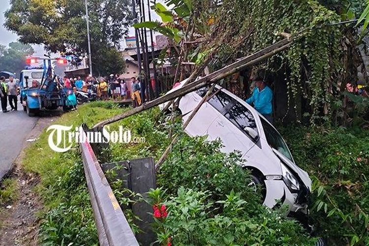 Toyota Calya nyaris saja anjlok ke jurang. Beruntung mobil berisi ibu dan anak 8 tahun masih tertahan pembatas jalan