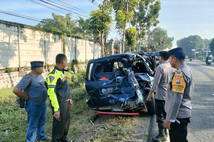 Isuzu Panther bonyok bodi usai diterjang Bus Sugeng Rahayu saat lagi putar balik. 1 tewas dan tiga luka-luka