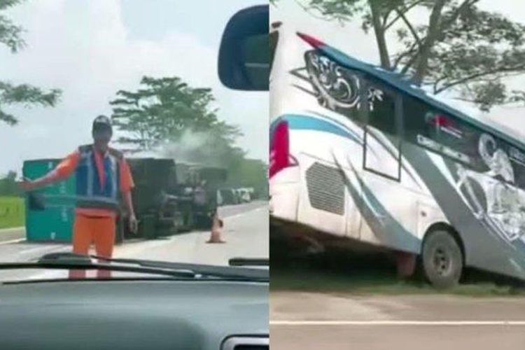 Bus PO Haryanto Hantam Pembatas Jalan Tol Sragen, Truk Pecah Ban Penyebabnya