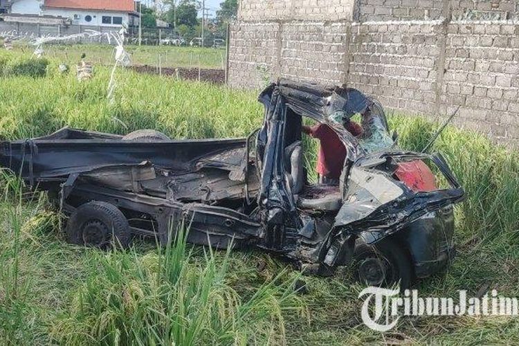 Daihatsu Gran Max berisi pasangan suami istri bos swalayan Putra Papua tertemper kereta api, buruh tani jaga sawah ikut meregang nyawa