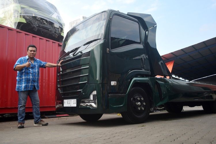Truk towing atau pengangkut kendaraan sekarang bentuknya masih monoton. ‘Kepala’nya masih bentuk asli dari pabrikan, demikian juga dengan belakangnya.